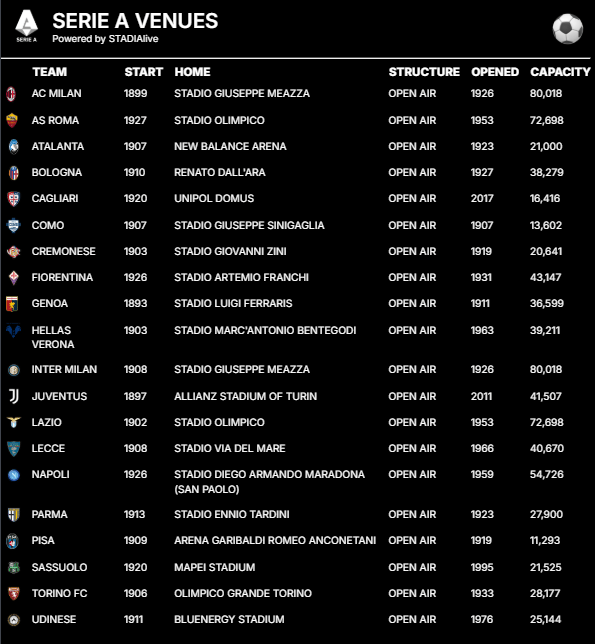 In the 2025‑26 campaign, competition remains fierce, with Inter Milan and Napoli leading the title race and Juventus pushing for return to form. The season structures — home‑and‑away balance, Coppa Italia integration, and European qualification stakes — ensure intensity from August through May. Star talents like Lautaro Martínez, Kevin De Bruyne, and emerging domestic prospects enliven storied rivalries, while venues like San Siro, Stadio Olimpico, and Gewiss Stadium anchor matchday drama with rich architectural identities. Serie A is also evolving: clubs and the league are adopting technology upgrades and sustainability practices to enhance fan experiences, while tactical innovation remains a hallmark. This blend of tradition, elite performance, and adaptation to commercial and technological trends defines its present sporting ecosystem.