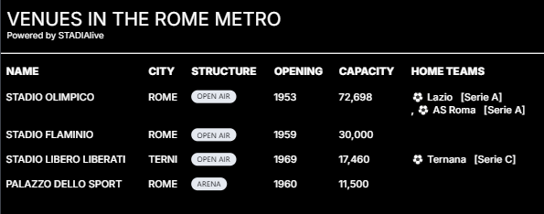 Click the stadium name to find out more about the venue at STADIAlive