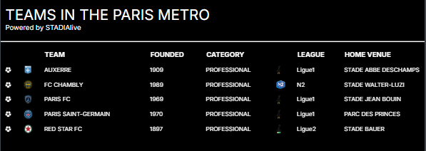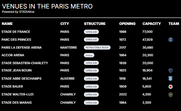 Click the stadium name to find out more about the venue at STADIAlive