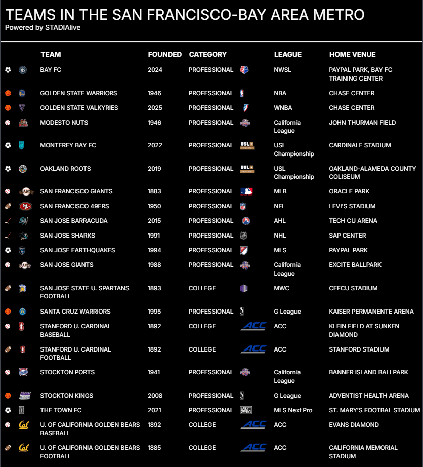 Sports have long anchored civic life in San Francisco and San Jose, where teams and venues function as extensions of neighborhood identity. Oracle Park stitched baseball into the city’s waterfront revival, blending skyline views with a distinctly local fan culture shaped by walkability and transit access. The Warriors’ move to Chase Center reinforced San Francisco’s role as a modern sports hub, pairing global brand appeal with year-round district activation. To the south, Levi’s Stadium and PayPal Park anchor the South Bay’s professional sports presence, reflecting Silicon Valley’s growth and international character. The 49ers and San Jose Earthquakes connect multigenerational fan bases across the region, turning game days into civic rituals that link technology, culture, and community pride.