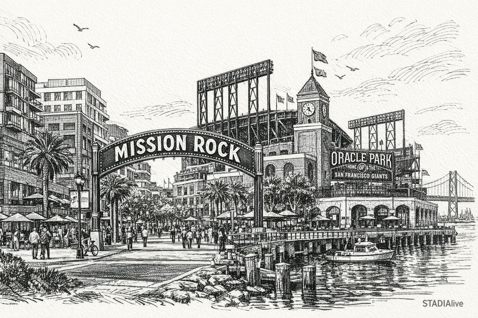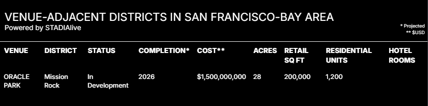 Since its opening, Oracle Park has been an anchor for economic activity in San Francisco’s South Beach and Mission Bay neighborhoods, catalyzing commercial, residential, and hospitality growth along the waterfront. Its location next to McCovey Cove and proximity to downtown have helped local restaurants, bars, and retailers thrive year‑round beyond the baseball season, contributing to the area’s appeal as both a visitor destination and a residential community. The success of the park spurred large‑scale mixed‑use developments such as Mission Rock—a 28‑acre, public‑private waterfront neighborhood project that includes office space, housing (with a significant share of affordable units), retail, and parks—linking the ballpark to broader civic life and job creation.