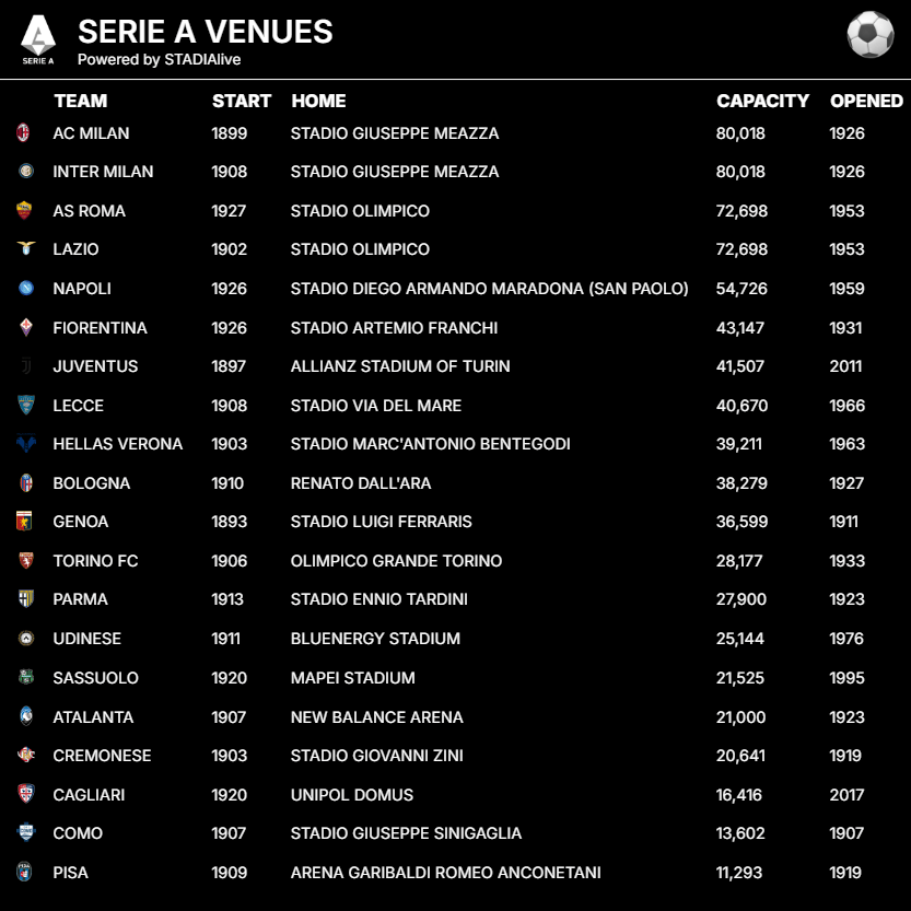 The current Serie A season mixes tradition with transition, hosting 20 clubs across iconic venues such as the Stadio Olimpico (Rome), Allianz Stadium (Turin), and San Siro (Milan) — the latter soon to be replaced by a new shared arena by 2030. The competition features intense rivalries — Juventus v Inter, Milan derbies, and Roma-Lazio showdowns — with elite talent including domestic stalwarts and international stars shaping tactical narratives. Format stability (home-and-away round-robin with relegation/promotion) coexists with innovation, such as technological integrations in officiating and fan engagement. The league is also exploring overseas expansion, including a potential U.S. regular-season fixture aimed at broadening its footprint.