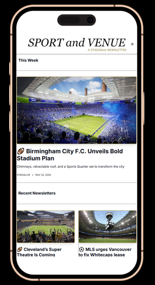 STADIAlive’s weekly newsletter delivering essential stadium news tailored for sports business minds.